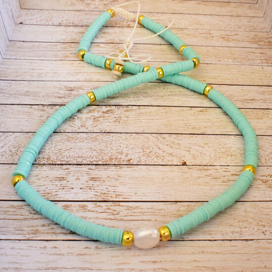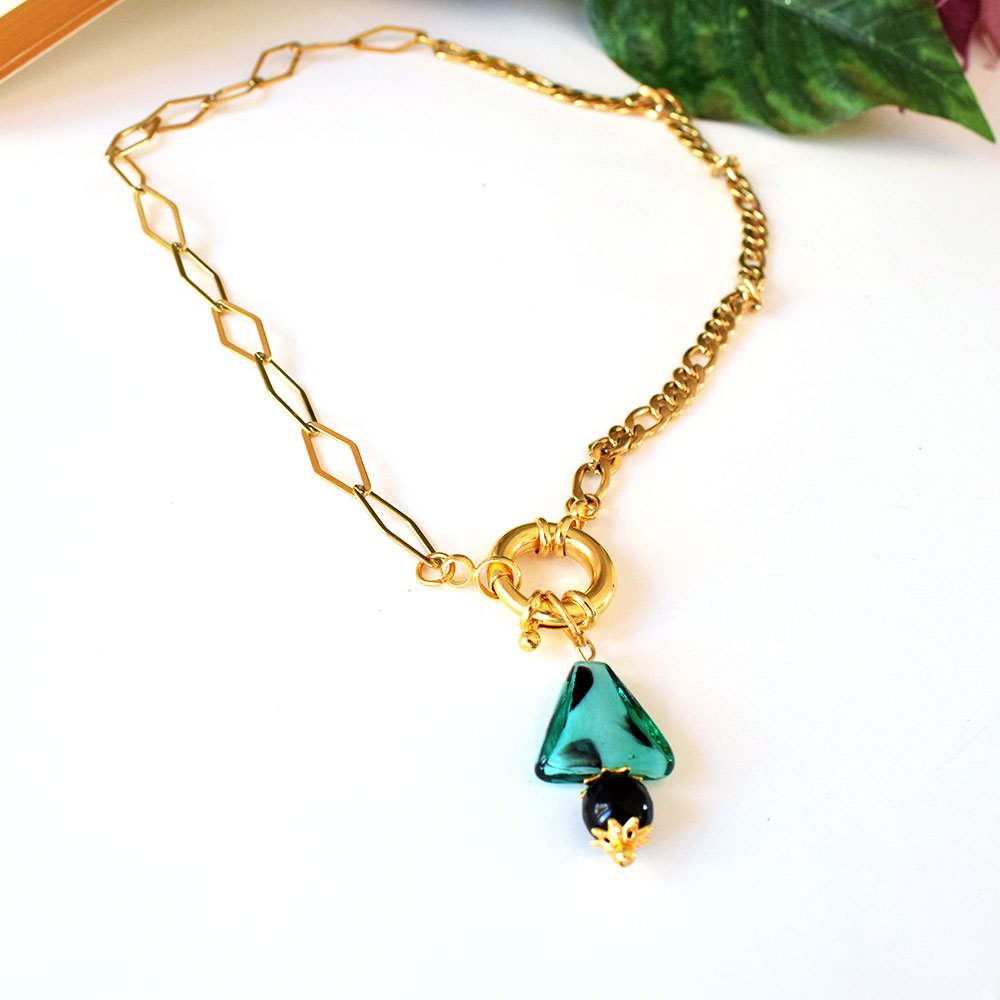 Ατσάλινο κολιέ με ζιργκόν - Glass pearl