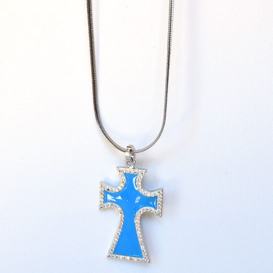 Κολιέ Σταυρός Σμάλτο γαλάζιο 45 εκ