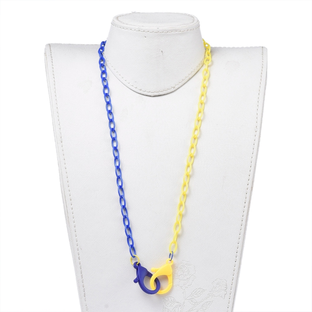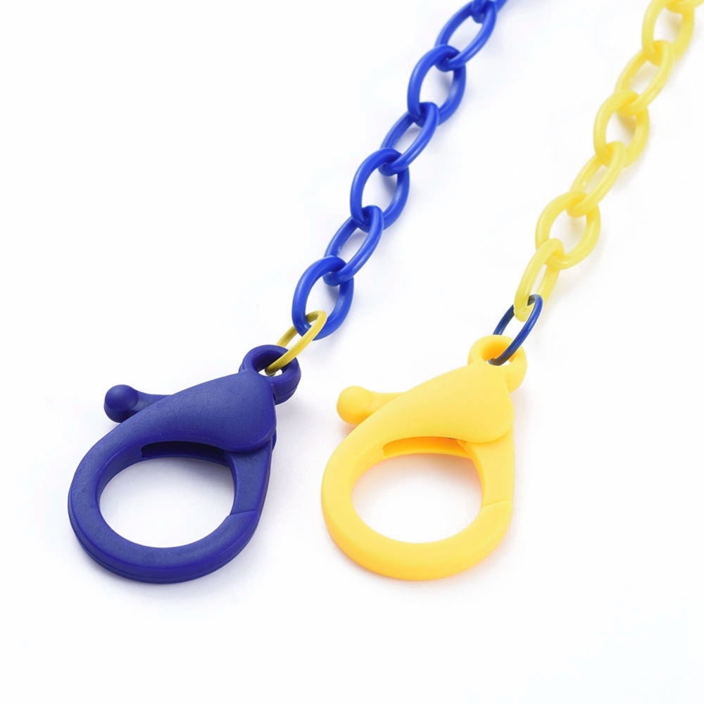 Μοντέρνα αλυσίδα για γυαλιά ηλίου με θερμοπλαστικά συνδετικά στοιχεία ,και πλαστικά μεγάλα καβουράκια για το κράτημα , συνοδεύονται και από καουστούκ λάστιχο διάφανο