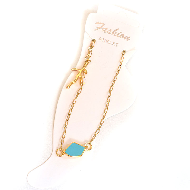Αλυσίδα ποδιού αστάλινη με τυρκουάζ σύνδεσμο