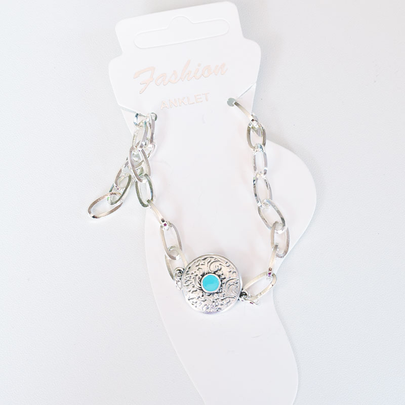 Αλυσίδα ποδιού ατσάλινη ασημί τυρκουαζ