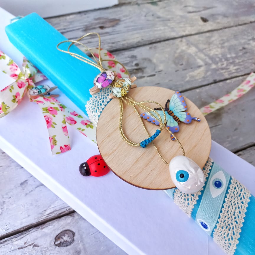 Χειροποίητη αρωματική λαμπάδα με γυναικείο κολιέ κεραμικό μάτι σε σχήμα αυγό