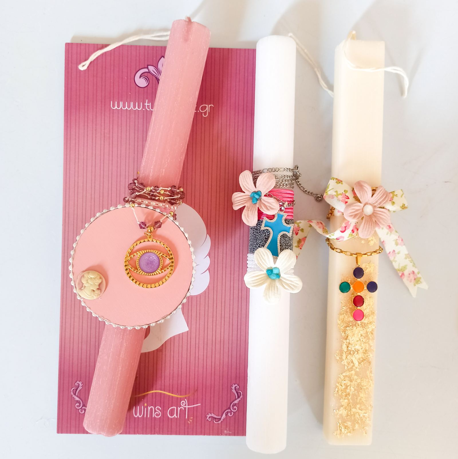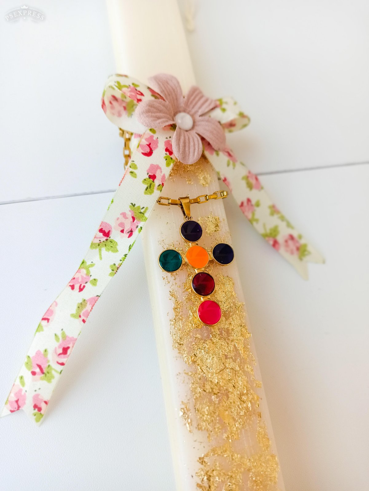 Χειροποίητη αρωματική λαμπάδα με γυναικείο κολιέ από Σταυρό πολύχρωμο