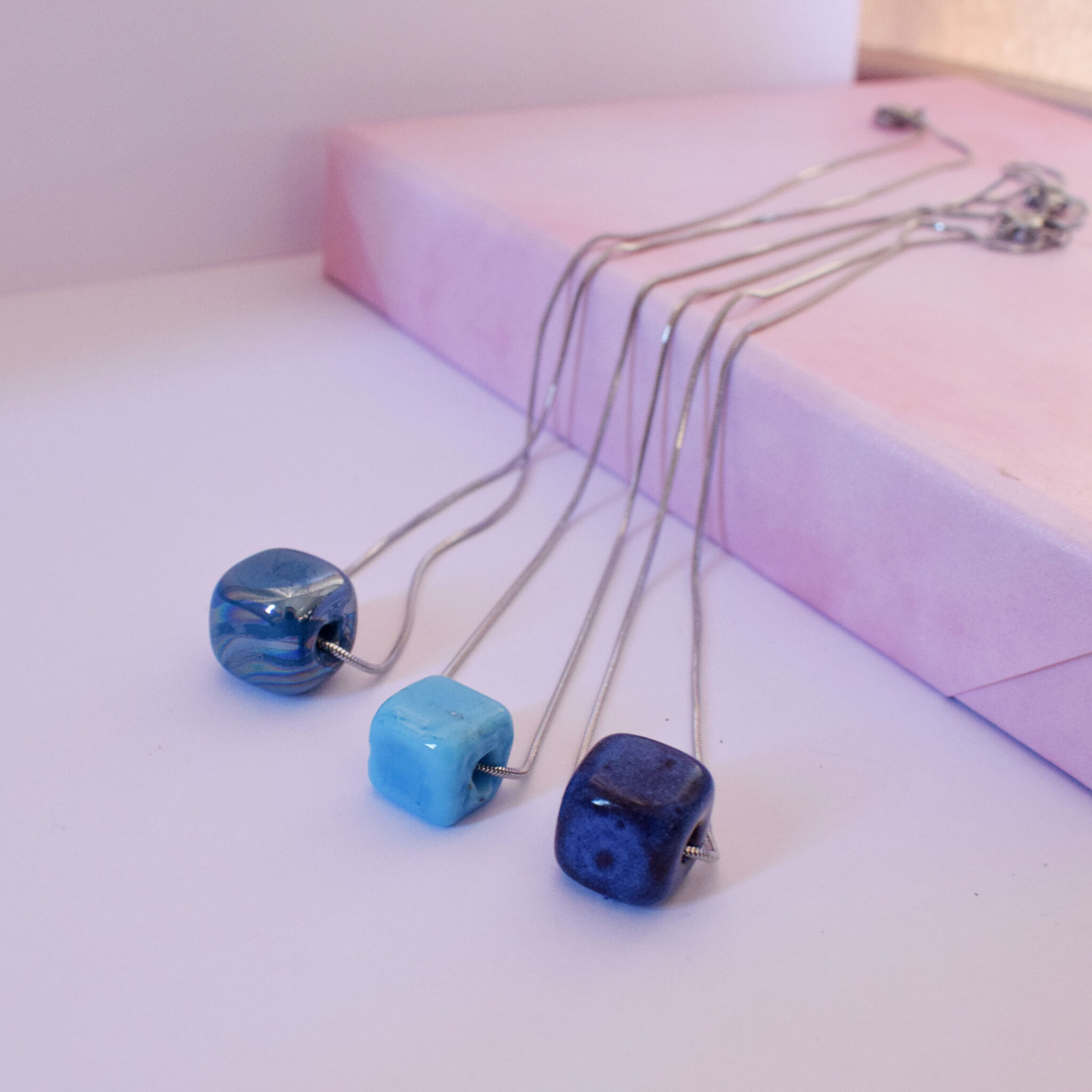 Ατσάλινα κολιέ με κύβο Γυάλινο ή κεραμικό 45 εκατοστά