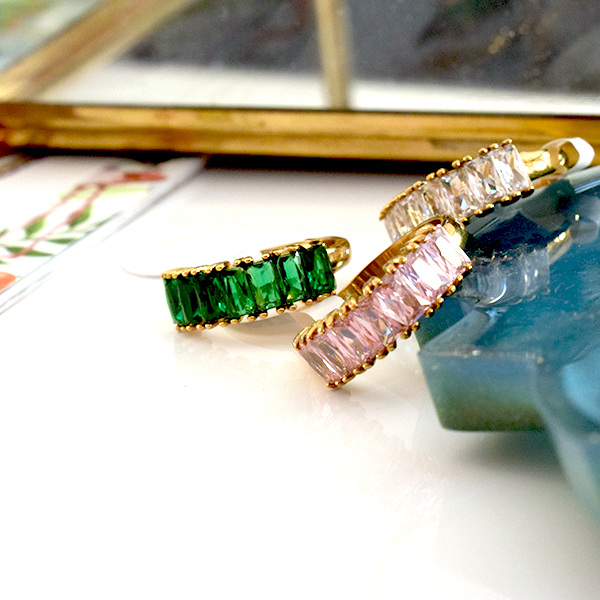 Ατσάλινο δακτυλίδι με κρύσταλλα ροζ