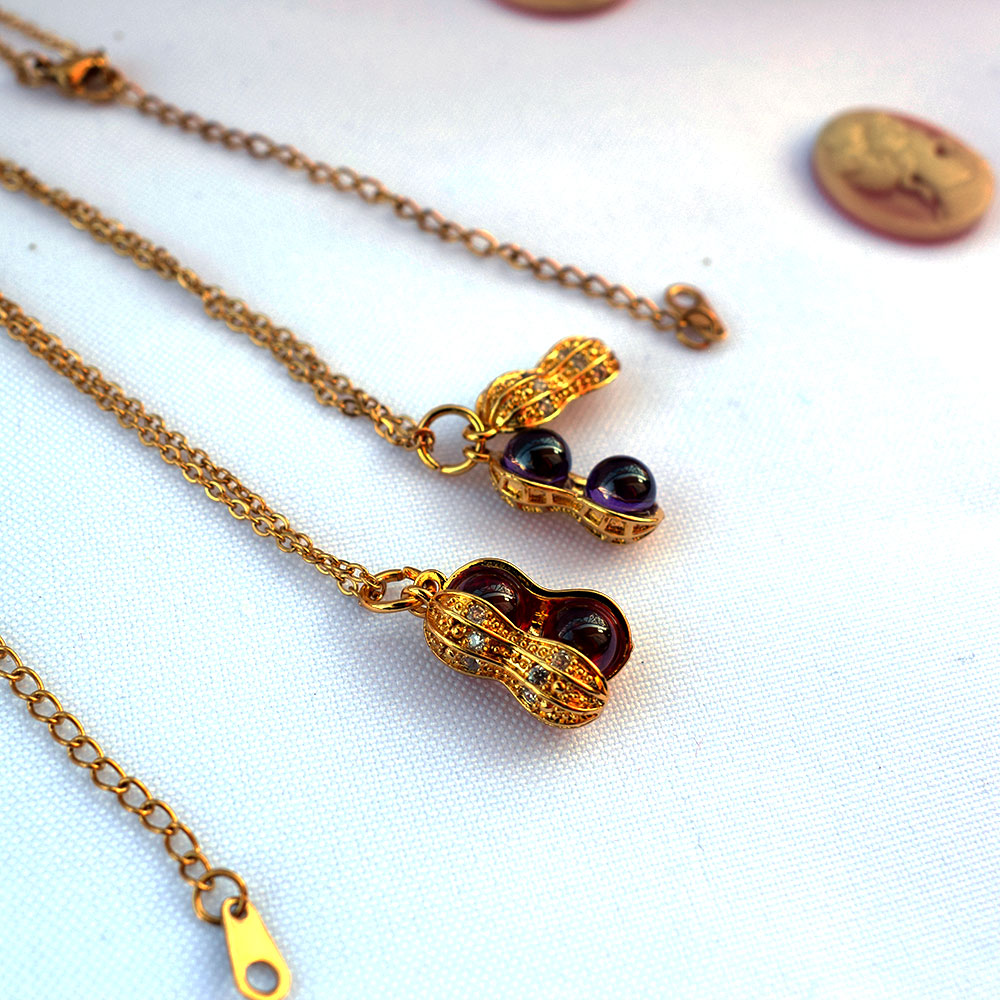 Ατσάλινο κολιέ επίχρυσο με μενταγιόν “Peanut”