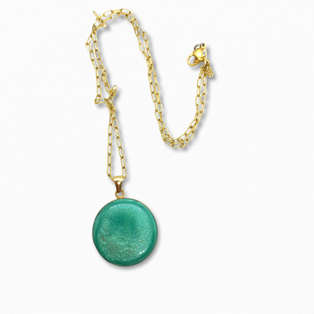 Κολιέ από ατσάλι , όλα τα μέρη, στρογγυλό μοτίφ με ρητίνη πράσινο