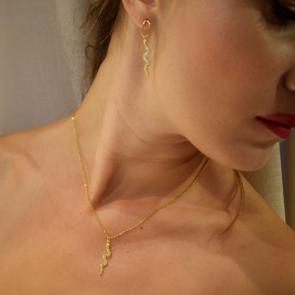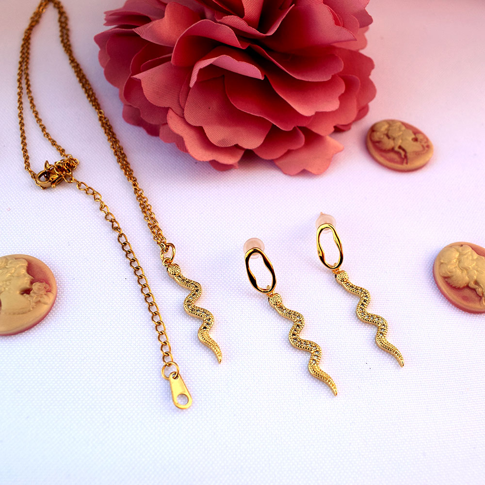 Ατσάλινο σετ κολίε με φίδι και σκουλαρίκια