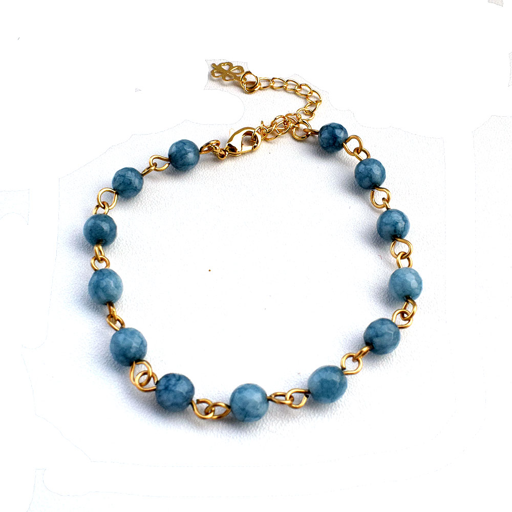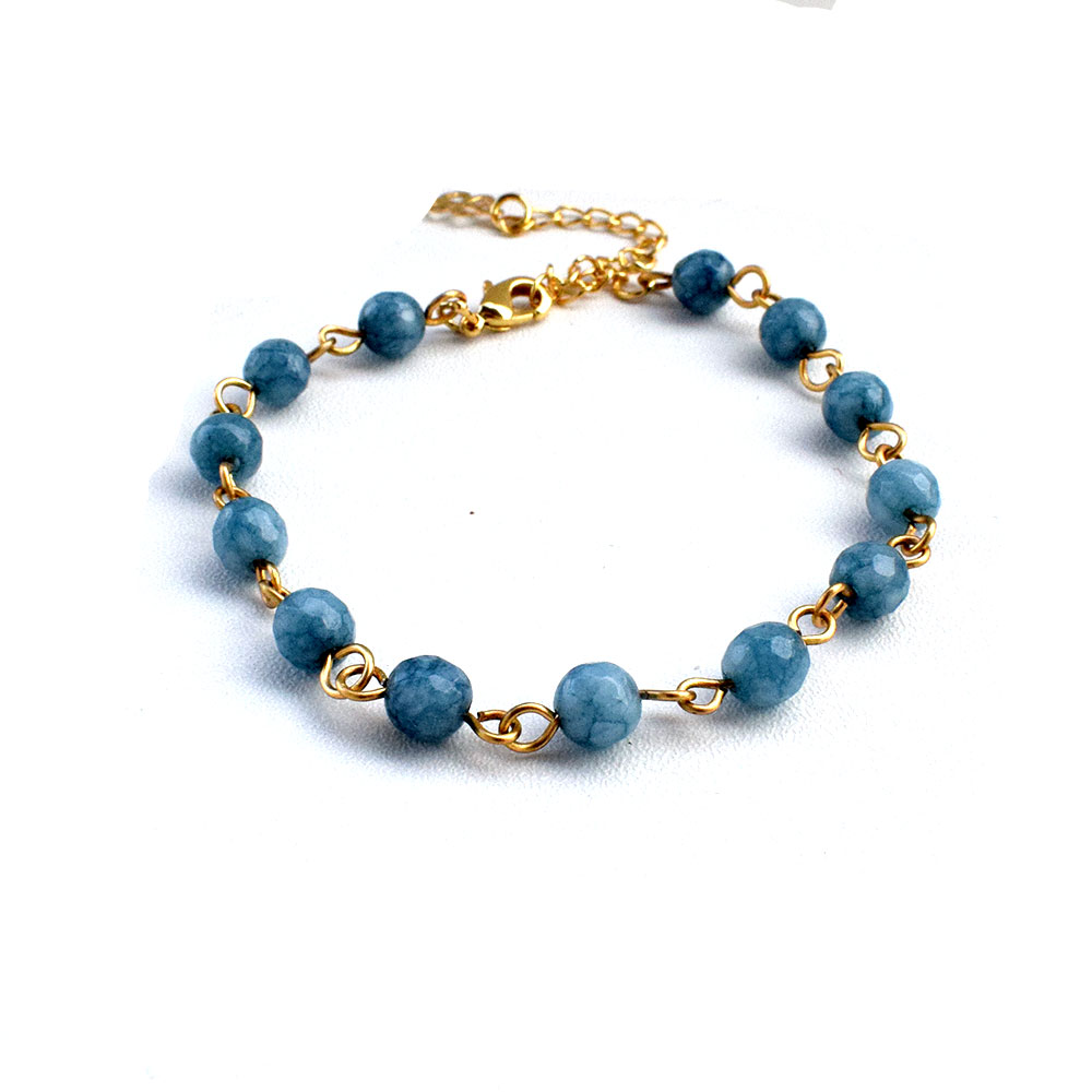 Χειροποίητο βραχιόλι με ατσάλινα τεχνικά στοιχεία επίχρυσα και χάντρες αχάτη σε βεραμάν χρώμα. Δεν μαυρίζει και δεν προκαλεί αλλεργίες.