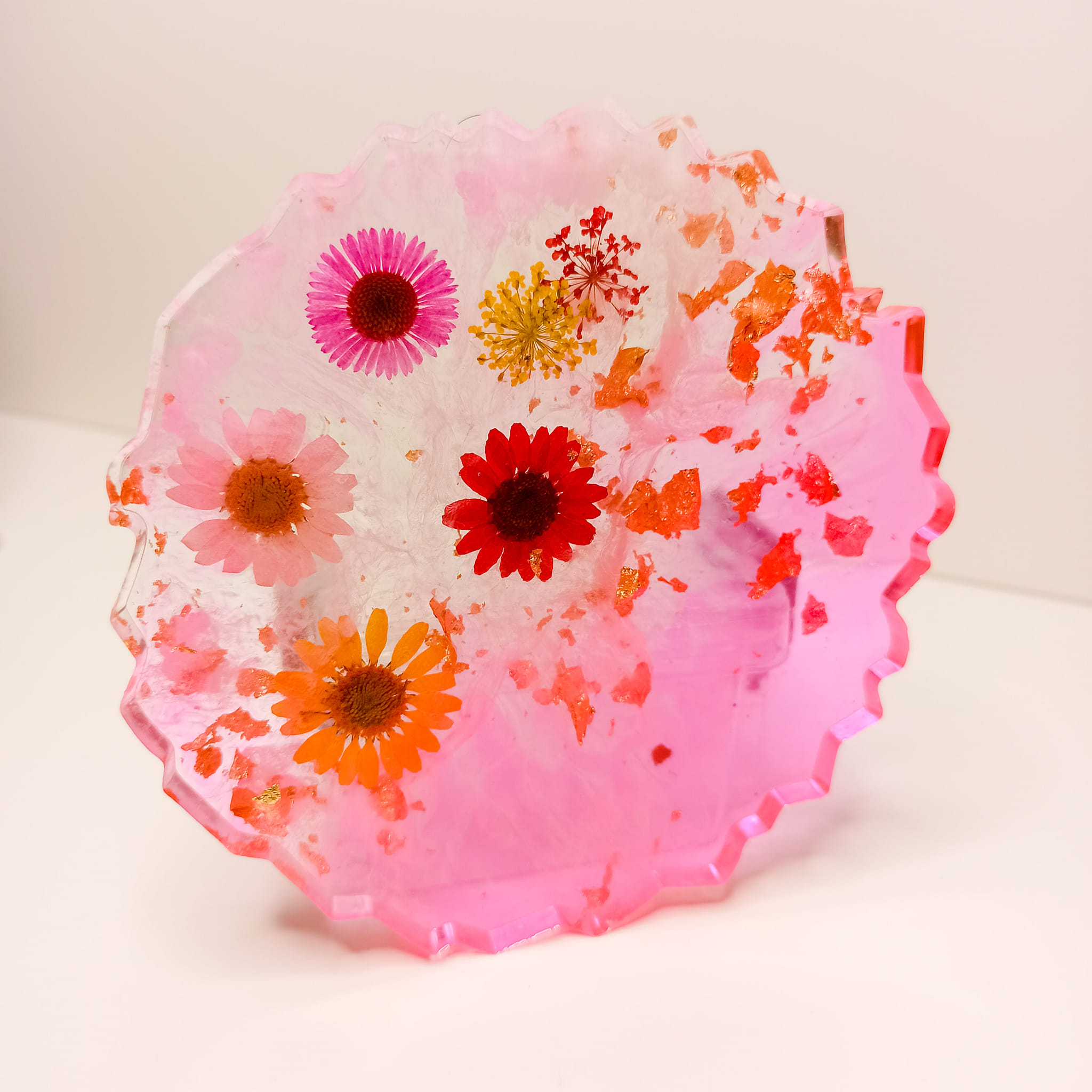Χειροπίητο σουβερ εποξηκής ρητίνη με αποξηραμένα λουλούδια