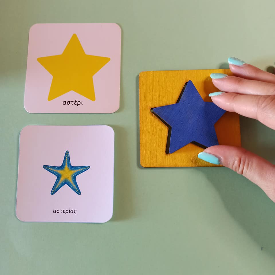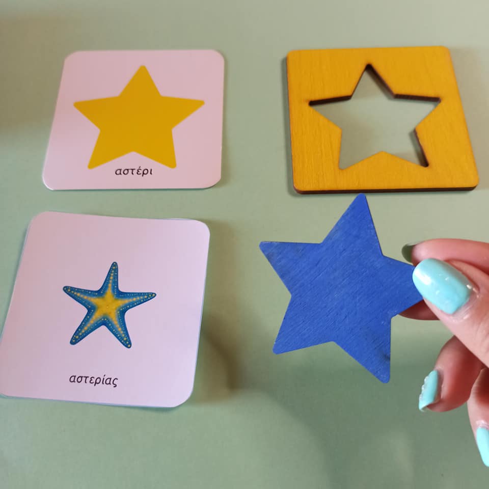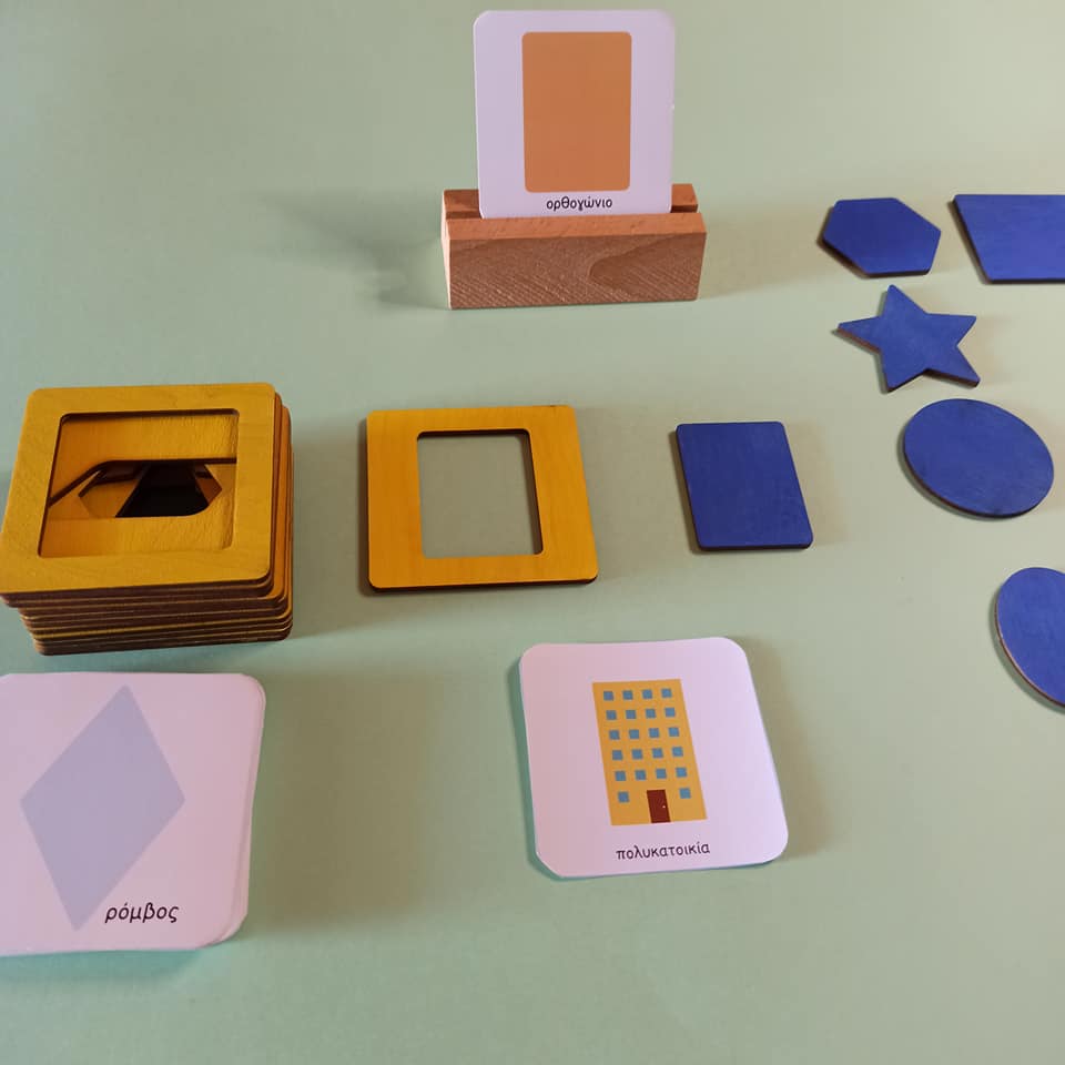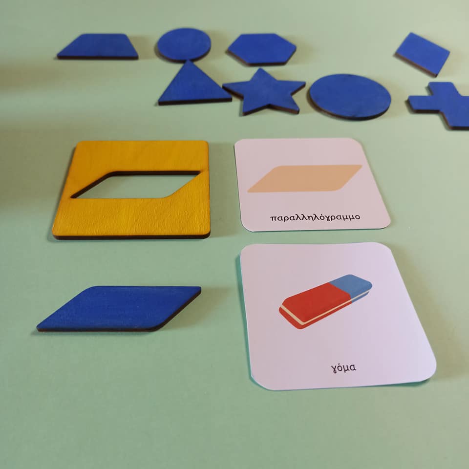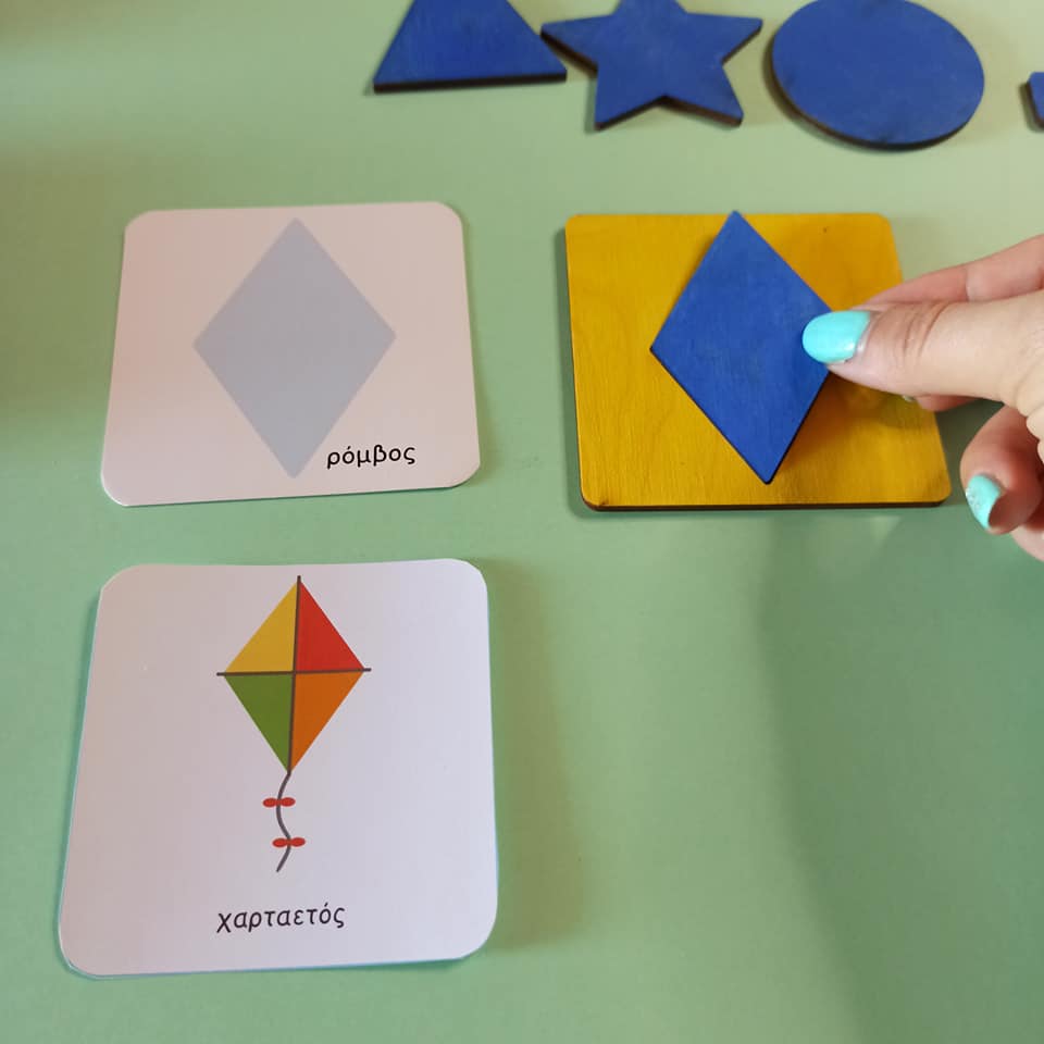 12 κάρτες με αντικείμενα στα αντίστοιχα σχήματα για ταύτιση