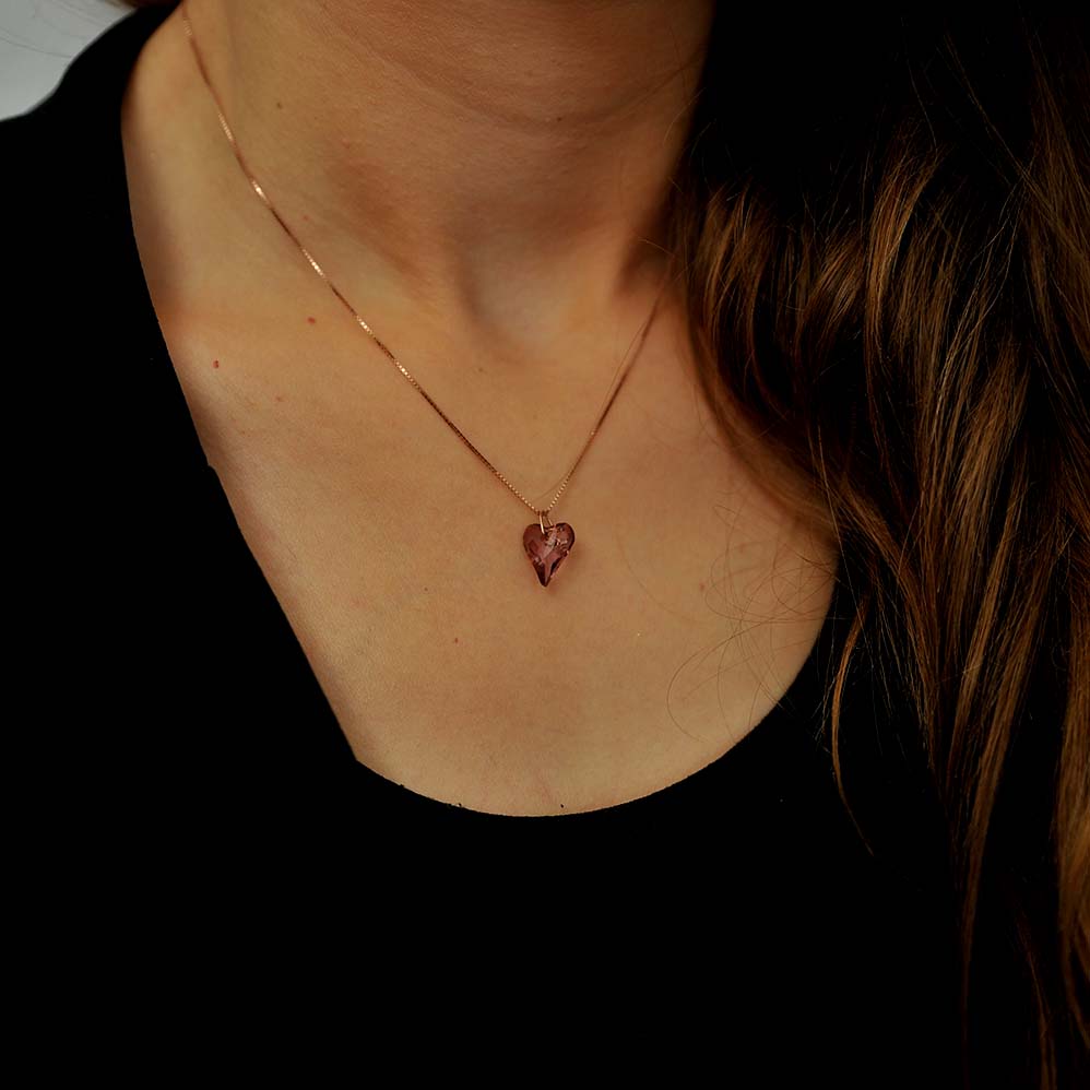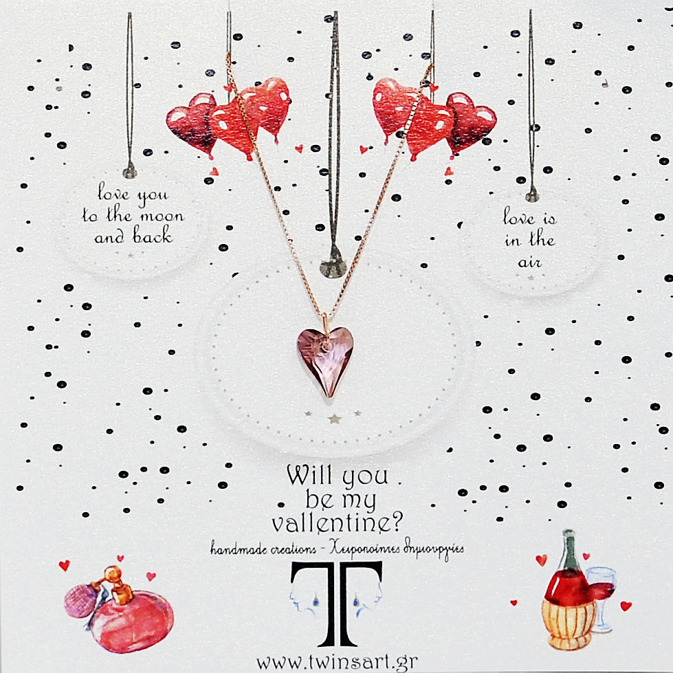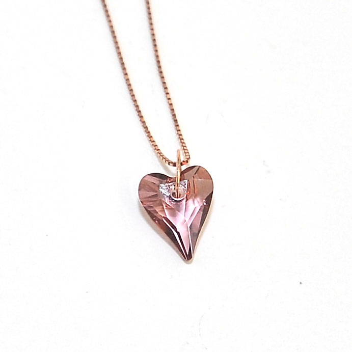 Κολιέ από ασήμι 925 επιχρυσωμένο με ροζ χρυσό και καρδιά Swarovski