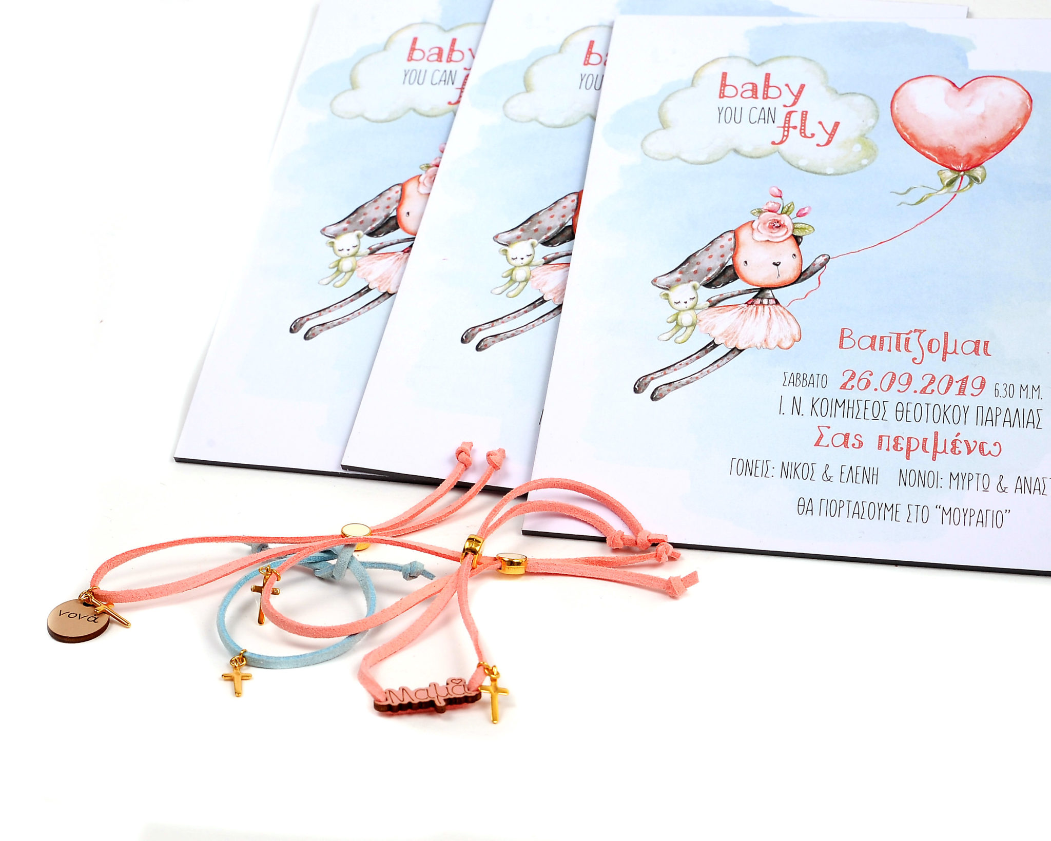 Χειροποίητα μαρτυρικά βάπτισης  Σταυρός και στρογγυλό στοιχείο με σμάλτο σε σουετ κορδόνι ροζ ή γαλάζιο.