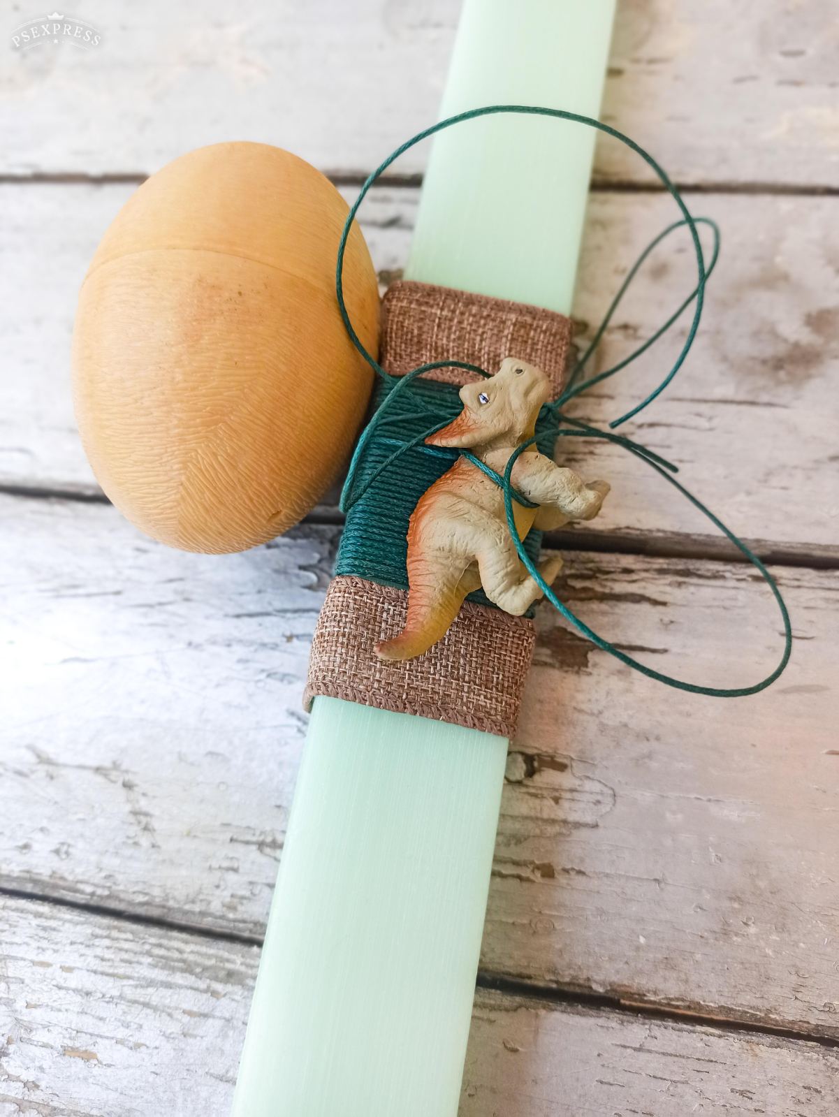 Αρωματική λαμπάδα 30 εκ με δώρο παιχνίδι δεινοσαυράκι σε αυγό , (τα σχέδια διαφέρουν)