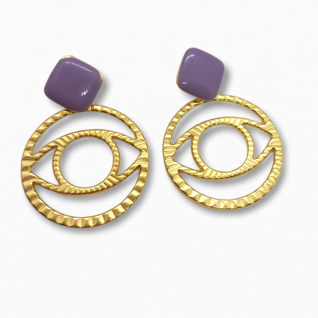 Σκουλαρίκια με λιλά καρφάκια και σχήμα μάτι