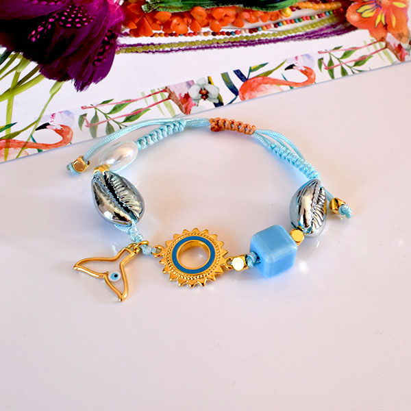 Βραχιόλι με κοχύλια και μοτίφ με σμάλτο ήλιος