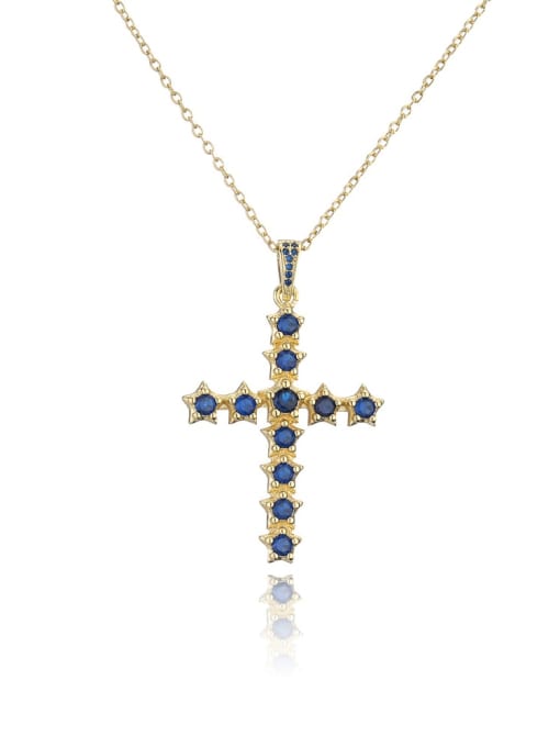 Κολιέ Σταυρός με μπλε ζιργκόν κρύσταλλα