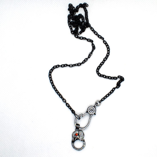 Κολιέ με μαύρη αλυσίδα ατσάλινη και μοτίφ ελεφαντάκι με ζιρκόν