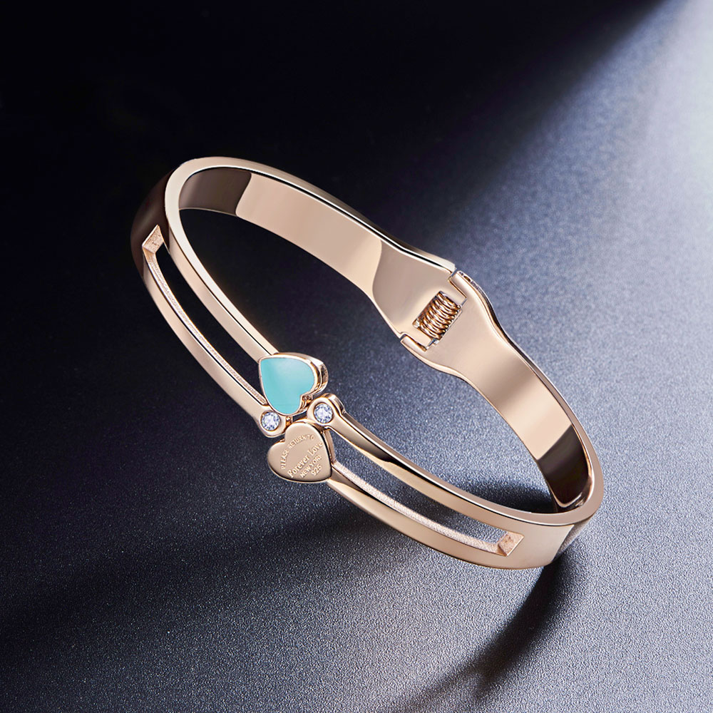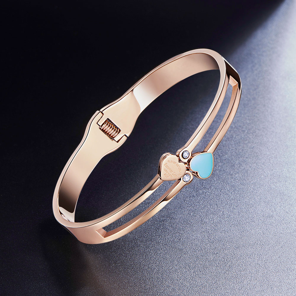 Ατσάλινο βραχιόλι ροζ χρυσό με καρδιά από σμάλτο και ζιργκόν